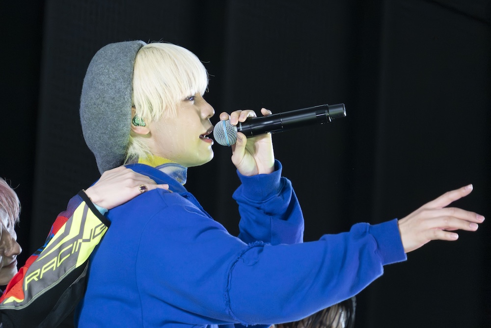 曲を終えると1人ひとりが大型ビジョンに大映しになって、一言ずつ挨拶。一生に一度きりのメジャーデビュー日ということで、皆、テンションが高く、耳付きの白いニット帽で“可愛い!”のコールを湧かせたYUMAは「足んないな。もっと!」といつになく強気でねだり、メンバーを「どうしたんだよ!?」と戸惑わせた。TAKUYAは「メジャーデビュー日がやってきTAKUYA!」、SEIYAは「メジャーデビューにぶちかまSEIYA!」と気勢をあげ、SHOWは「昨日、勝手にしんみりしまして、嬉しいなあって。浮足立ってるんですよ、今日、落ち着かないんです」と記念すべき日を迎えた喜びを表した。