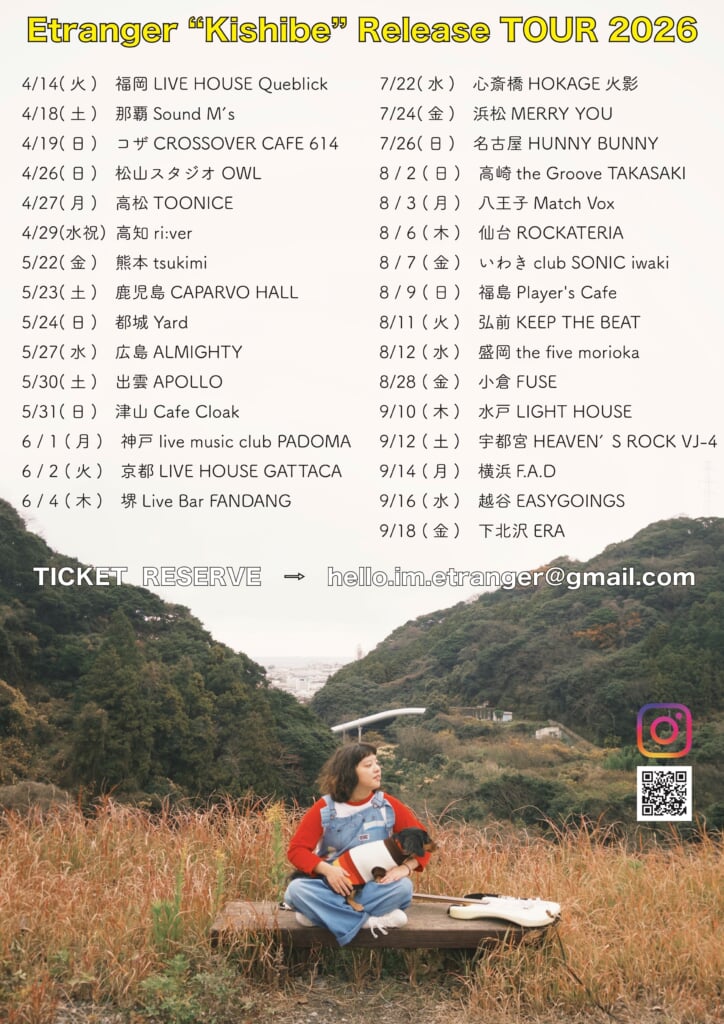 福岡県北九州市小倉在住のシンガーソングライターEtranger(エトランジェ)が4月より、全国ツアー<“Kishibe”Release TOUR 2026>を開催することが発表となった。