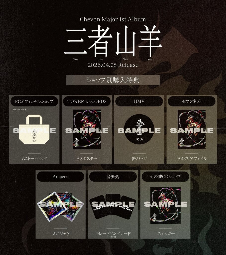 Chevon、メジャーメジャー1stアルバム『三者山羊』ジャケット&収録曲を一挙公開