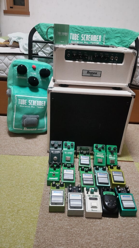 所謂TS系達。どちらかと言うとMAXON派なので、OD系と言いたいところだが、地味。OOD9とOSD9を入れるか微妙だったけど、緑系の色なので入れてみた。1番気に入ってるのはOD9pro+かなー。でも結局どれを使っても、ツマミいじって同じ音を出そうとするのはなんでだろう?