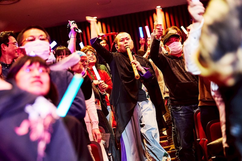 アンコールの拍手に呼ばれステージに戻ってきた華風月の3人は、インスト曲「悠久の地」を演奏。厳しくも優しい大自然の中にいるような、荘厳な曲。和楽器は自然の音を表現するとも言われるが、まさにそれを実感できるような美しい曲だった。