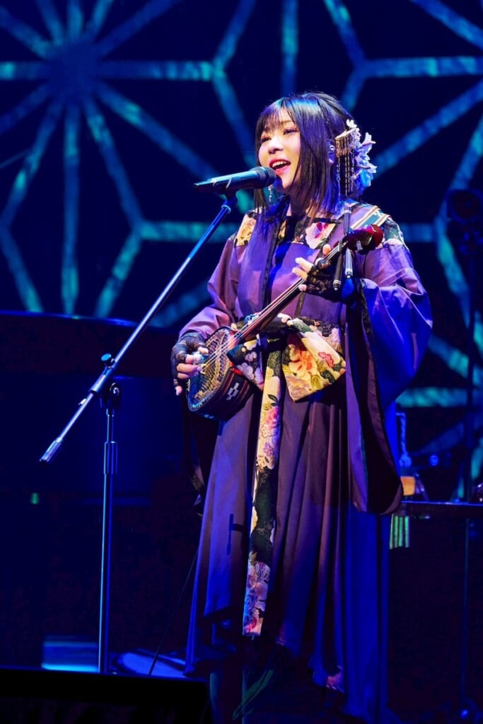 和楽器バンドでも、鈴華のソロライブでも詩吟が披露される場面はあったが、今回はより本来のスタイルに近い、尺八と箏とのシンプルな構成だ。題は「春の花を尋ぬ」。初春に梅の花が南側から咲いていることを見つけ、“春は東方から”という常識に対してユーモアを持って詠うという詩だ。なかなか普通の生活で本物の詩吟に触れられる機会は少ないので、宗家の詩吟をコンサートで聞けるというのはとても興味深い。朗々とした詩吟に圧倒された会場からは、大きな拍手が起こった。