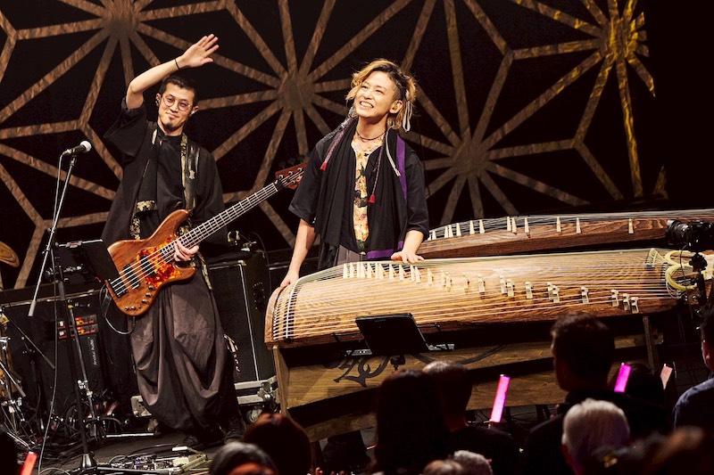 華風月は鈴華ゆう子(歌, ピアノ,詩吟)、神永大輔(尺八)、いぶくろ聖志(箏)によるアコースティックユニットで、2012年に結成された。このメンバーはのちに洋楽器や和太鼓、津軽三味線をメンバーに加え、“和楽器バンド”としてメジャーデビューを果たすのだが、そのルーツとも言えるのが華風月。結成から14年が経ち、この日はそれを祝す華やかな宴が繰り広げられた。