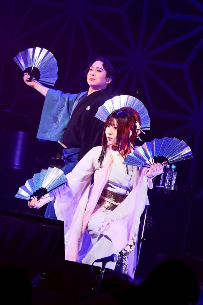 いよいよ公演もラストスパート。ここでリリースされたばかりの「江戸時空列車」が披露された。江戸と現代をタイムリープするストーリーの楽曲だ。活動休止中の和楽器バンドの風味もどこかに感じられるようなモダンな楽曲だが、会場のファンも一緒に歌ったりと、会場でも楽しめる曲に仕上がっていた。