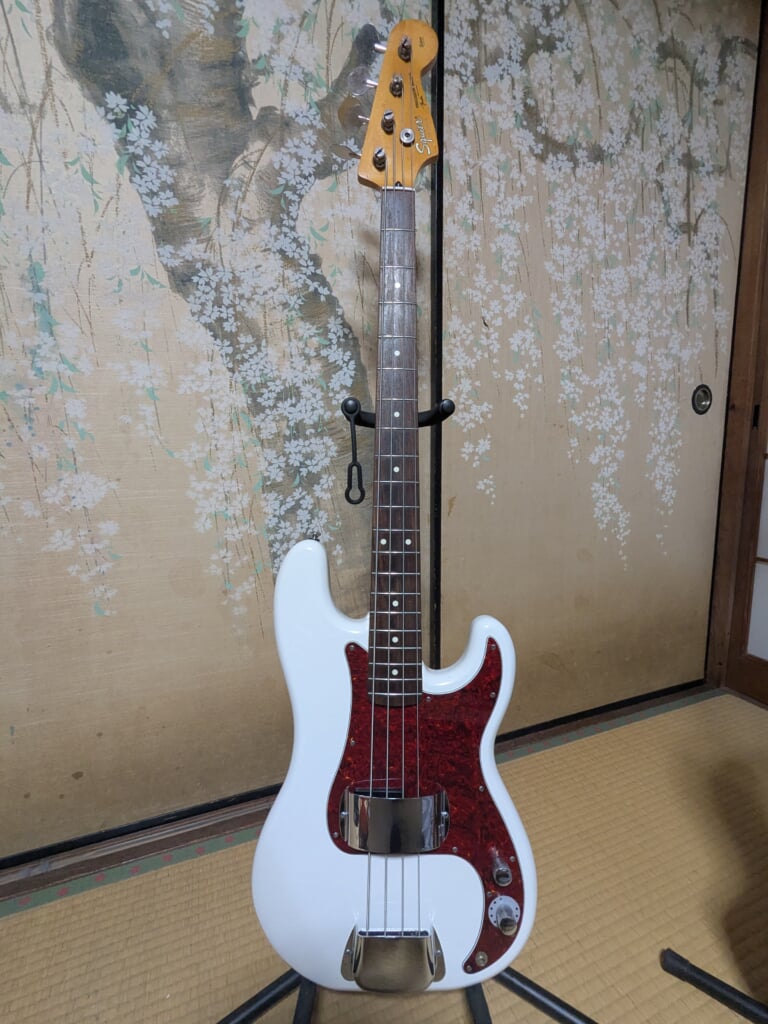 元は黒でしたがオリンピックホワイトを目指して白に塗装。うまくはできてないので近くでは見せません。ピックガードは白の1プライのものから赤べっ甲の4プライに交換。(本当は茶べっ甲頼んだつもりが赤べっ甲になっていた。こっちが悪いのか、ア○ゾンが悪いのか)