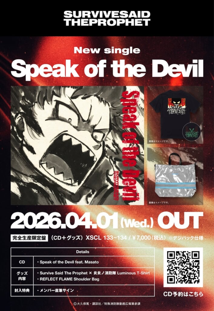 サバプロ、ニューシングル「Speak of the Devil」CDリリース決定。TVアニメ『炎炎ノ消防隊 参ノ章』第2クールEDテーマを含む収録内容&アートワーク解禁も