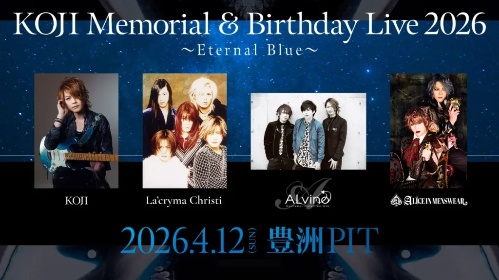 ──そしてmichi.さんの2026年の活動は、想像の上をいくアグレッシヴなものになりそうです。まず、4月12日には豊洲PITでKOJIさんが在籍したLa’cryma Christi、ALvino、ALICE IN MENSWEARが集結する追悼イベント<KOJI Memorial & Birthday Live 2026 〜Eternal Blue〜>が開催されます。このイベント開催の経緯を教えていただけますか?
