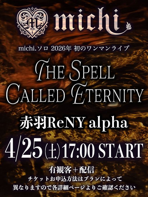 ──多忙な1年になりそうですね。では、4月25日に東京・赤羽ReNY alphaで開催するmichi.ソロワンマン<THE SPELL CALLED ETERNITY>について教えてください。ここにもサプライズが発表されています。