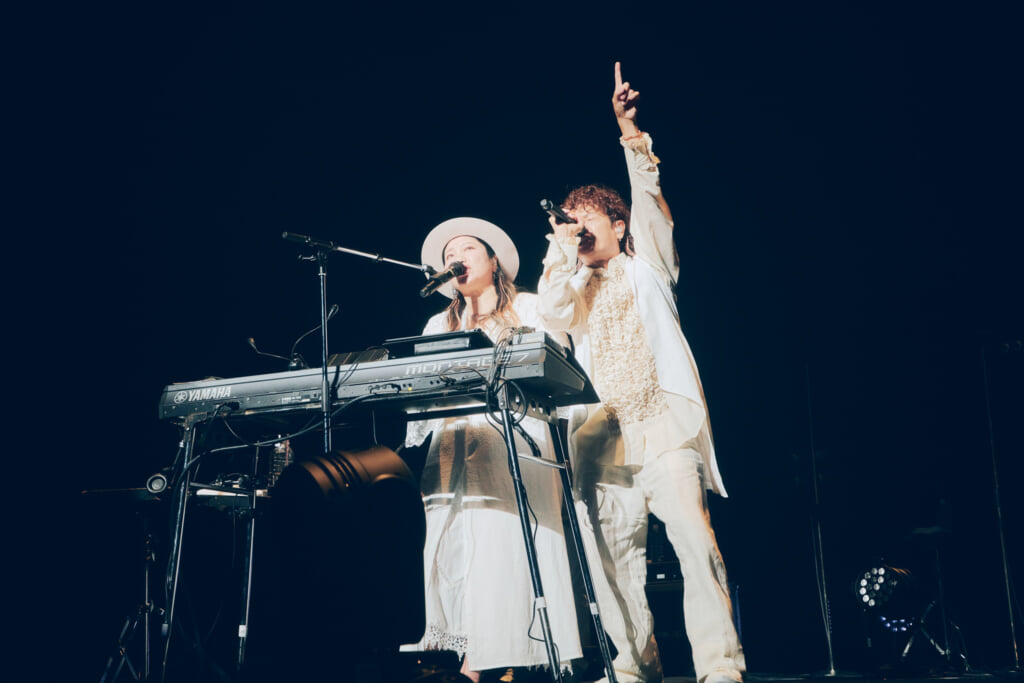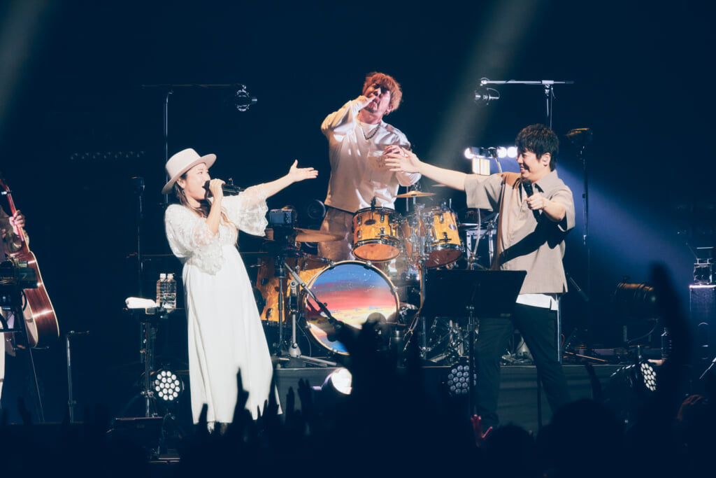 披露したのは「366日(Official Duet ver.)」だ。美しい鍵盤の旋律の中、仲宗根のしっとりした歌と大橋のマイルドな歌が重なった時の美しさは思わず息をのむほど。この上ないハーモニーに微笑み合うふたり。小指と拳を合わせた後、大橋は仲宗根をハグし、「この後も楽しんでください!」と言って颯爽とステージを後にした。