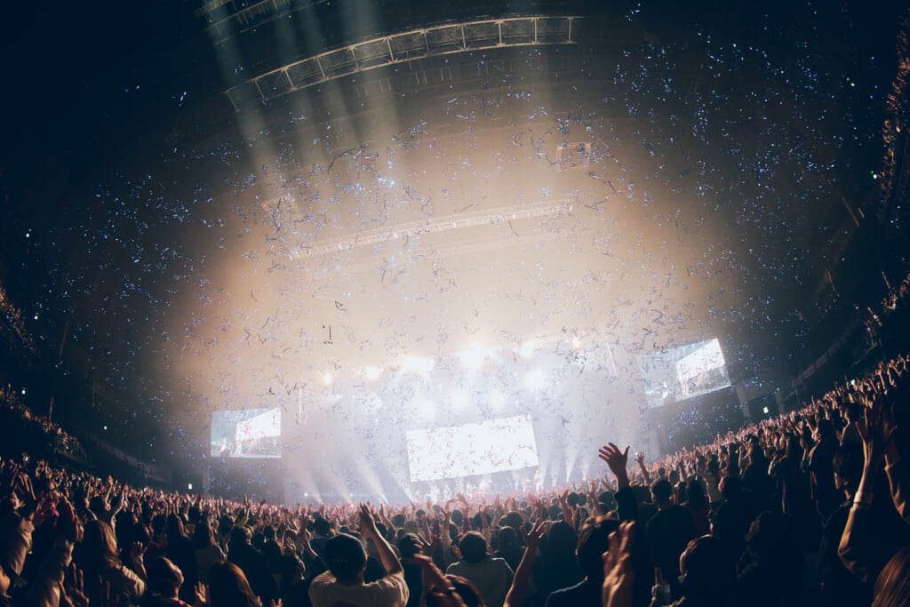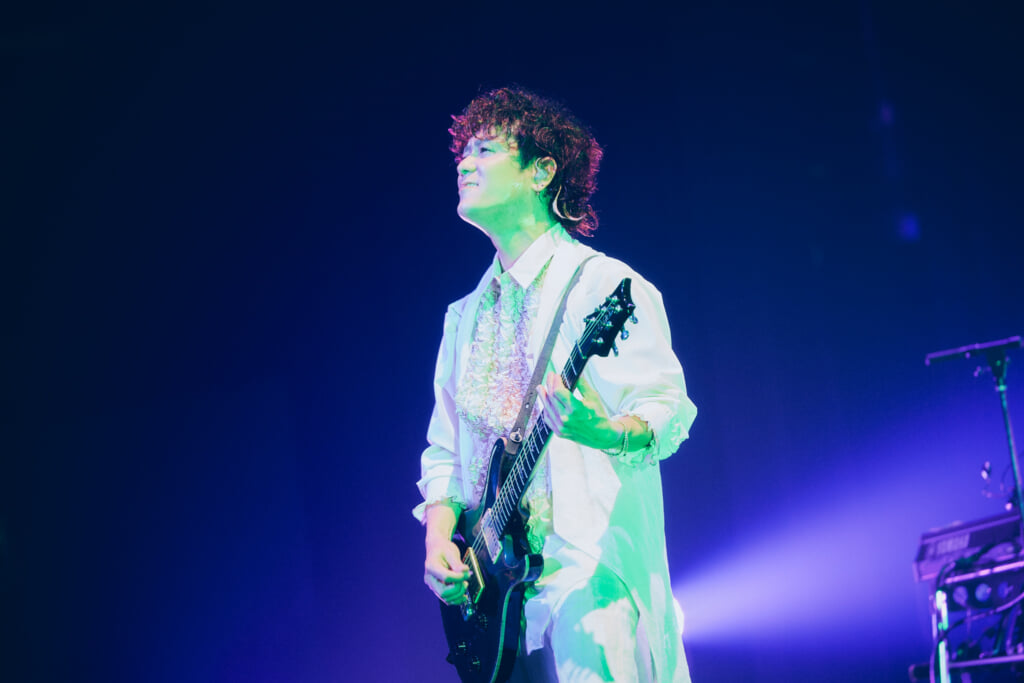 そして新里が「あなたの人生に次の曲を当てはめてください」と言って披露された「恋をして」、スカのリズムが取り入れられたノリの良いサウンドにステージも客席も踊った「隆福丸」、イントロで銀テープが舞った「きのこいぬ」……数々の名曲が惜しみなく披露され、祝祭感を高めていった。