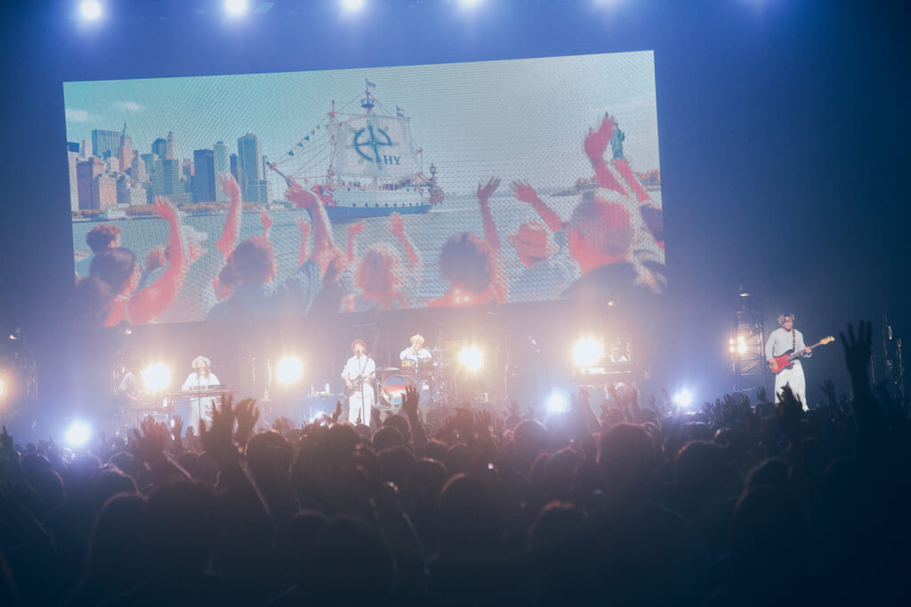 あいみょんというと、対バンツアー<ラブ・コール>にHYのみ2回連続で呼ぶほどHYを敬愛しているが、凛とした歌声で「Ocean」を歌い、オーディエンスを魅了した。キーボードを弾く仲宗根に駆け寄り、歌を重ね、喜びを爆発させる場面もあった。