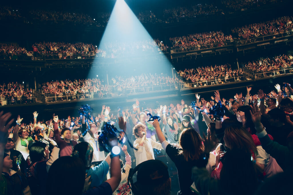 ライブでしかやらない楽曲「フェイバリットソング」をカチャーシーと共に披露。今度は仲宗根がアリーナエリアに降りて行き、オーディエンスとハイタッチ。