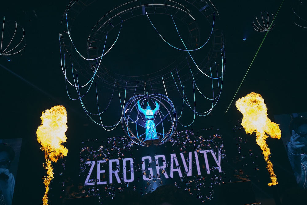 宇宙服風の衣装に身を包んだ岩田剛典が、新たな星に降り立つという演出の中、ツアーのコンセプト曲「ZERO GRAVITY」から幕を開け会場は宇宙空間に一変した。そして、ソロとして初のドラマタイアップ曲「Reaching for Your Light」や、自身初の「オリコン週間合算シングルランキング」1位を獲得した「Phone Number」を鏡を用いた演出で披露。鏡越しに虚像と実像が交差するようなパフォーマンスは楽曲の世界観ともリンク。