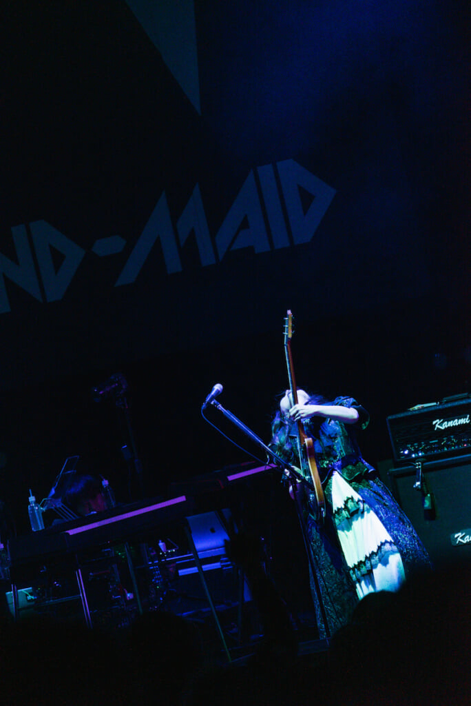 もちろんこうしたセッションパート山盛りのお給仕においても恒例の「おまじないタイム」は通常通りに設けられていたし、すべても演奏終了後、SAIKIが「みんなありがとう! 今年もよろしくね!」と挨拶した後に聞こえてきたのも、小鳩の「それでは行ってらっしゃいませ、ご主人様お嬢様」という言葉だった。そうしたことも含めたBAND-MAIDが生まれながらに持ち合わせてきた特徴的な要素は今も変わっていない。しかしこうした『番外編』などを通じてのさまざまな試行を重ねながら、5人の「深化しながらの進化」もずっと止まらずに続いている。だからこそ彼女たちのこの先の動きから、一瞬たりとも目を離すわけにはいかない。2026年最初のお給仕を観て、何よりも強く感じたのはそれだった。