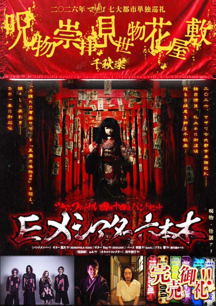 呪イ系アイドルグループ・マザリが、現在開催中のツアー<七大都市単独巡礼『呪物崇拝見世物花屋敷』>のファイナルを4月14日、EX THEATER ROPPONGIにて実施する。このライブを支えるバンドメンバーが発表された。