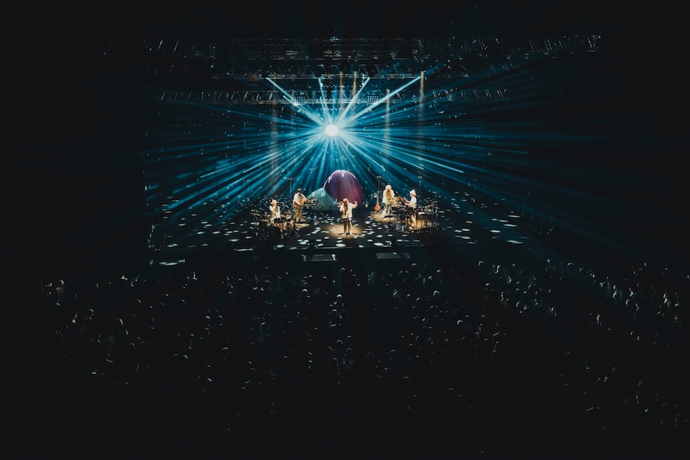 「ダンスは自由です。ダンスが下手でも初めてでも関係ない。今日この日を楽しみたいと思うならば、どうか、どうか自由に踊っていってください」と伝え、そのまま「350ml Galaxy」に繋げる。曲中には熊木がジョッキグラスを持って登場すると、数千人のオーディエンスと一斉に“乾杯”を交わし、祝祭の空間を瞬く間に作り上げていった。勢いをそのままに、「HOUSE」や「実感」、「一筋差す」などのフロアを熱狂させる楽曲や、「LIGHTHOUSE」、「太陽」、「コーヒー・セイブス・ミー」といった ポジティブなエネルギーを持ちながらも暖かさで包まれるような優しい楽曲を、彼らの最大の特徴である”インタールード”を駆使したノンストップのパフォーマンスで繰り広げていく。