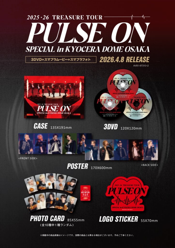 TREASUREが、自身3度目の日本ツアー<2025-26 TREASURE TOUR [PULSE ON] IN JAPAN>より、ツアーファイナルとなる京セラドーム大阪公演(2026.2.11)の模様を収録したDVD/Blu-rayを4月8日(水)にリリースすることが決定した。