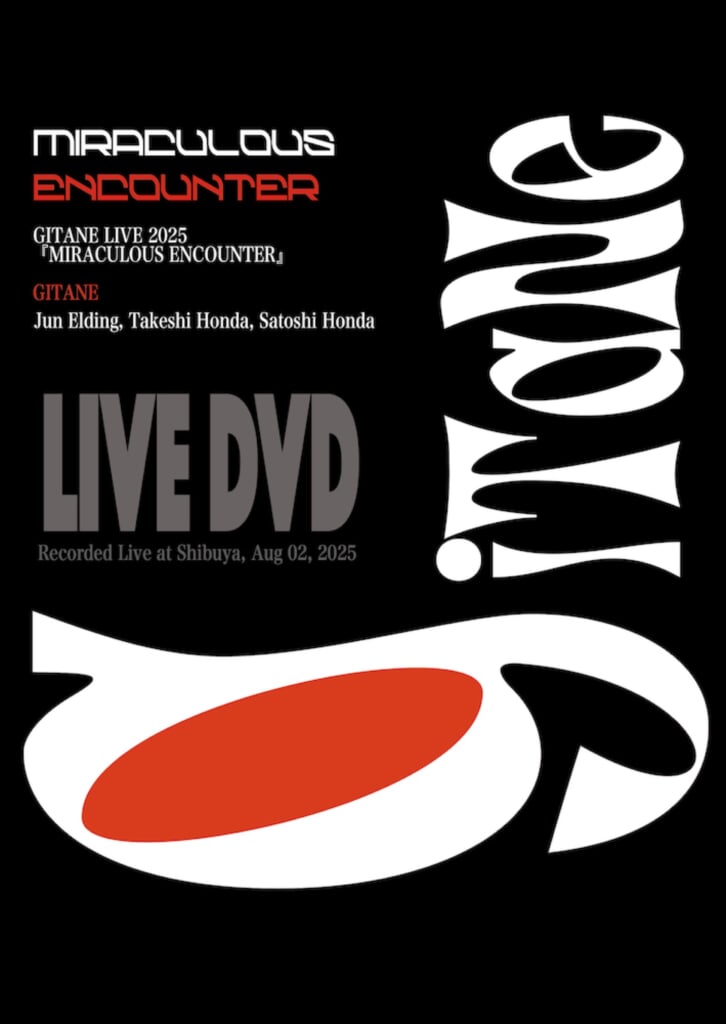 PCと生楽器を融合させたその先駆け的な制作スタイルは、今や音楽シーンの主流のひとつとなった。しかしGITANEのサウンドは、そのどれにも埋もれることなく独自の存在感を放ち続けている。DVD『MIRACULOUS ENCOUNTER』は、長い年月を経て再び交差した三人の軌跡と、現在進行形のロックバンドとしての姿を刻んだライブ映像作品として届けられる。なお、本作は全国レコード店およびオンラインショップにて販売される。