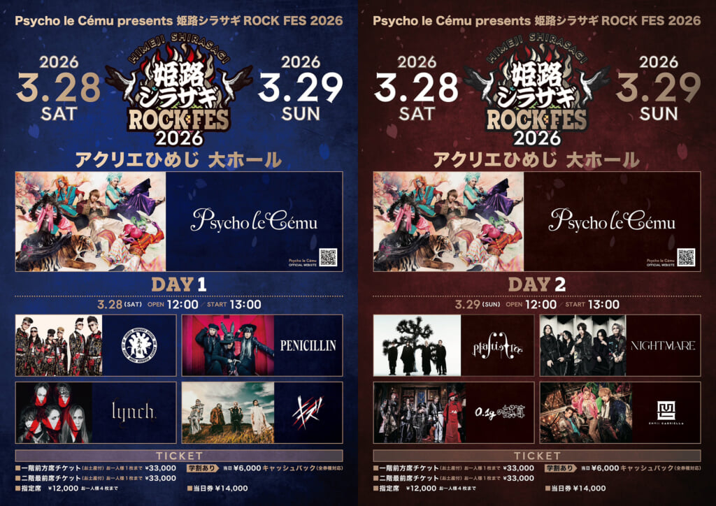Psycho le Cému主催フェス<姫路シラサギROCK FES 2026>が3月28日および29日の2日間、兵庫・アクリエひめじ 大ホールで開催される。この開催を記念して、フェスのテーマ曲 「シラサギ」 が初CDリリースされることが決定した。