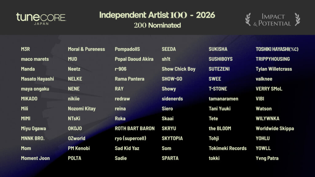「TuneCore Japan INDEPENDENT ARTIST 100 – 2026」