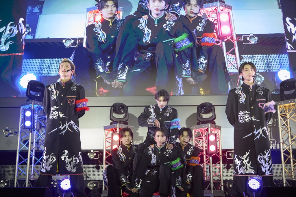 ここからはリョウガを交えて7人でのトークへ。EP『Osyan』について、リョウガに「どんなときに聞いてほしい?」と問われた近藤は「ツッパリたいときですね!」と言い切ってみせた。また、森田璃空は「まずバイクの音から始まって、本当にびっくりしました」と、リード曲「羅武が如く〜恋の⾵林⽕⼭〜」を初聞きしたときの感想を告白。曲をプロデュースした綾小路 翔についても、武田が「レコーディングでも直々にディレクションしてくださって、すごく優しくて!おかげで、みんな今までと違うツッパリ要素を加えた歌い方をしてるんです」と教えてくれた。