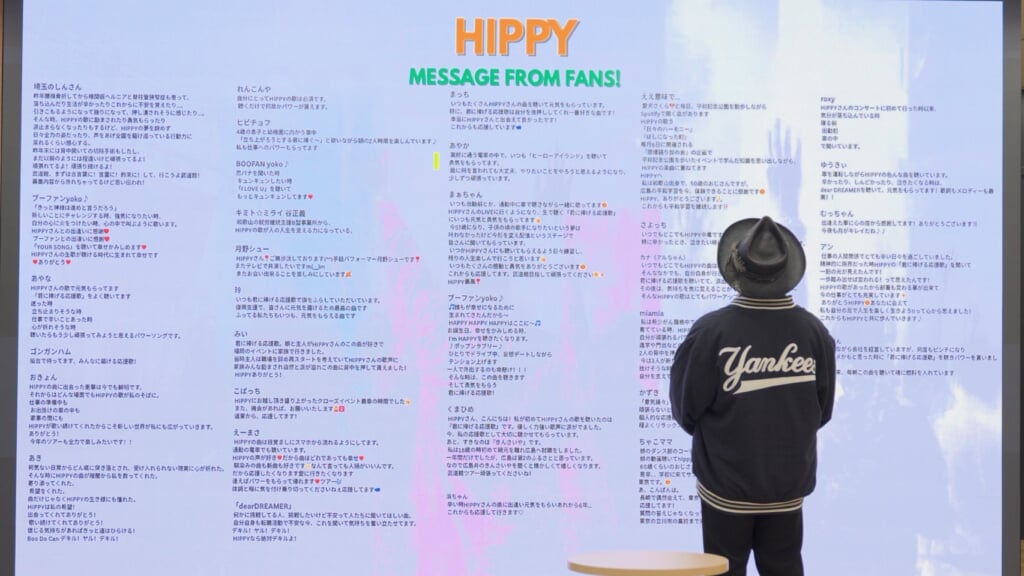 実際アーティストにとって、ファンに届いているという実感を得る機会は意外と多くないのだとか。もちろんライブでは、客席からの熱量や愛情を直接感じることができる。でもライブは一夜だ。そのライブに至るまでの道程では応援の声はなかなか届かない。そんな毎日が日々続いていく。HIPPYは「自分の活動に自信が持てない時間、火がつくまでの“くすぶる時間”というのはやっぱりあるんです」と振り返る。だからこそ、ファンからの言葉が実感を伴って届いたとき、それはアーティストにとって大きな喜びをエネルギーとなっていく。