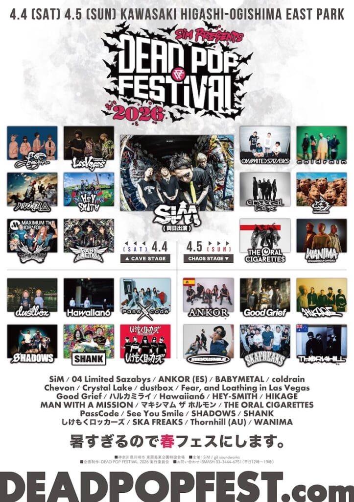 約1年2ヶ月ぶりとなるこの新曲は、バンド初の試みとして米国人プロデューサーを迎えて制作され、SiM元来の破茶滅茶っぷりにさらに輪をかけた世界照準のメタルコアナンバー。「デッデデデッデ!(Dead×5)」という強烈なフレーズが印象的だ。主催フェス<DEAD POP FESTiVAL 2026>開催直前の新曲リリースとなる。