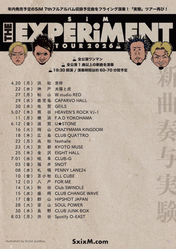 そして4月20日からはワンマンツアー<THE EXPERiMENT TOUR 2026>が全国24箇所で開催される。現在制作中のニューアルバムから全公演1曲以上演奏するという実験的なツアー。チケットは3月28日より一般発売が開始する。