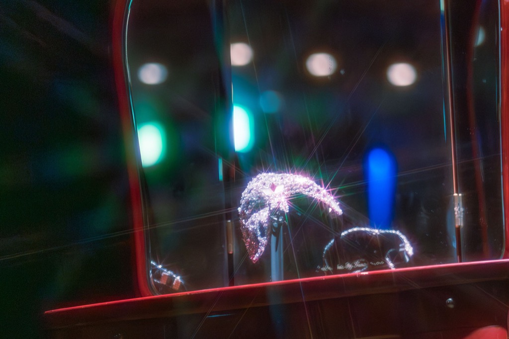 この日彼が装着していた仮面は、主に顔の右半分を覆うクリスタルガラス製のもので、彼が上手(かみて)を向けば口元以外を仮面で覆った姿が、下手(しもて)を向けば生身の表情が見える。その姿は人間以外の生命体と人間の一人二役のようでもあり、ヒューマノイドロボットのようでもあり、二面性の象徴のようでもあり、輝きによりさらに強化された超学生と生身の彼自身のコントラストのようでもあった。