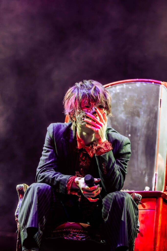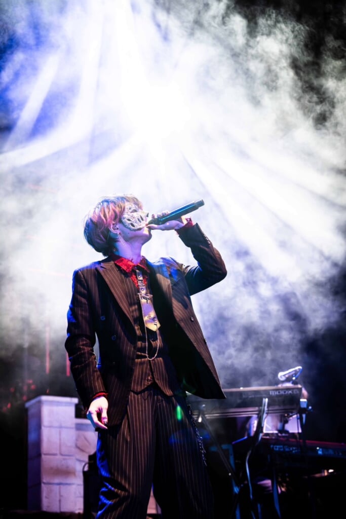 ミステリアスな導入を挟み、「サイコ」ではドレッサー前のスツールに腰掛けて歌唱する。「脳内革命ガール」の間奏でジャケットを脱いで立ち上がり、それを肩に掛けて歌うなどスタイリングでも観客の熱い視線をさらった。ボカロPデビュー曲「ネクロバイト」のセルフカバーでは繊細さとダイナミズムを持ち合わせたボーカルを展開する。ここまで思い切りのいい歌が歌えるのは、自分自身で作った楽曲ゆえかもしれない。アグレッシブなアンサンブルも含めて、こちらに噛みつくような獰猛さが痛快だ。デュエット曲「ドロシー」では歌だけでなく、装着している仮面の形状を利用し、顔の向きを変えて一人二役を成し遂げる。歌や音だけでなく“絵”としての美しさもキャッチーに表現した。
