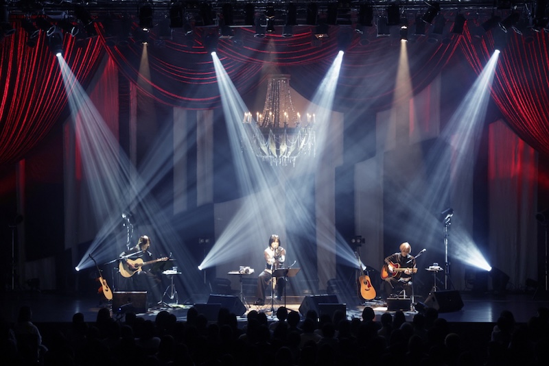 <Phantom>シリーズは、歌とアコースティックギターのみというシンプルかつミニマムな編成で行われている公演だ。従来はKIRITOが弾き語りで歌唱し、サポートを務めるJOHNがリードや装飾的ギターフレーズを担ってきたが、今回新たにCERO (Jupiter)が加わり、リードとバッキングが分担されたツインギター編成となったことで、KIRITOは歌に専念するステージへと変化した。