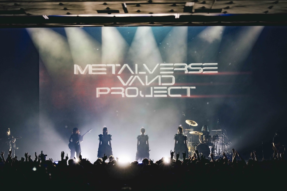 オープニングアクトとしてイベントの口火を切ったのはマルチバース・プロジェクトのMETALVERSE。2025年秋のBABYMETALのアジアツアー以来久しぶりの“出現”となった。先日、新たなガールズバンドプロジェクト「METALVERSE VΛND PROJECT」として5月9日に東京・Spotify O-EASTでワンマンライブを開催することがアナウンスされたばかりだったが、その予告編とも言えるようなサプライズなライブが繰り広げられた。客席が暗転するとストーリームービーが始まり、その映像を背にした3人のメンバーが登場。なんとその後に続いて、ギター・HAL-CA(ASTERISM)、ギター・Li-sa-X(KOIAI)、ベース・SERINA(TRiDENT)、ドラム・NAGISA(TRiDENT)の合計4名のバンドメンバーがサプライズで登場した。予告無しのまさかのバンド編成にオーディエンスの熱量は一気に上がり、1曲目「Crazy J」から大歓声の幕開けとなった。