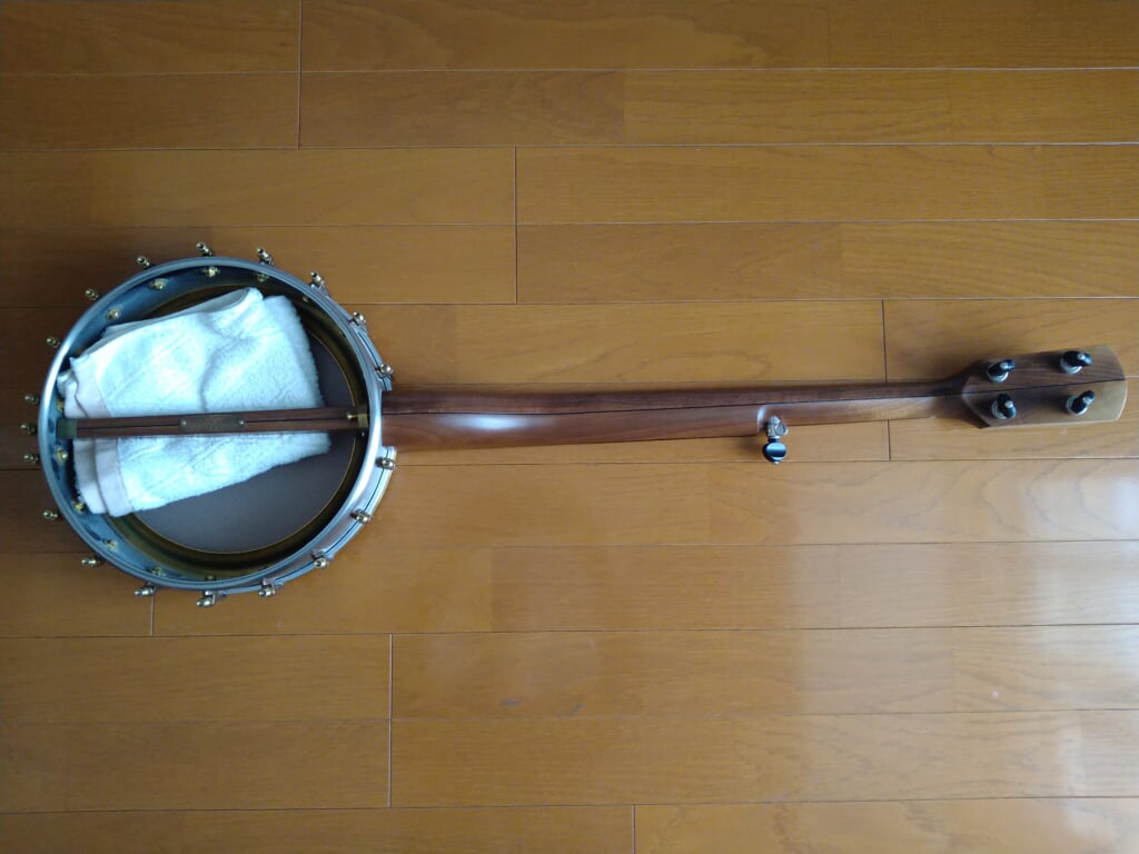 オープンDにチューニングすることが増えて、悩んだ挙句、アメリカからレイルロードスパイクを取り寄せ、冷や汗かきながら指板にドリルで穴を開けてスパイクを打ち込んだのも思い出のひとつです。見果てぬ夢みたいなもんですけど、いつかこのバンジョーを携えてアメリカに渡り、アパラチアでオールドタイムのフェスティバルに参加してみたい。