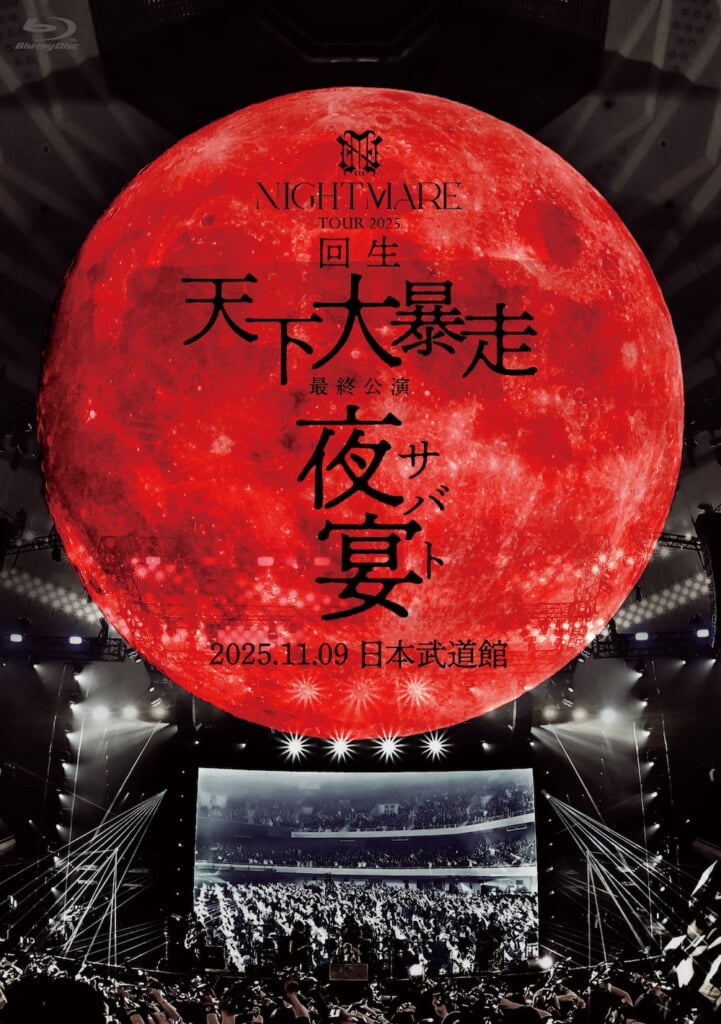 また、4月22日にリリースする映像商品『NIGHTMARE TOUR 2025 回生 天下大暴走 最終公演 夜宴 2025.11.09 日本武道館』のアートワークも公開された。ライブ当日の熱狂を象徴するかのような赤い月が映えるアートワークに仕上がったという。