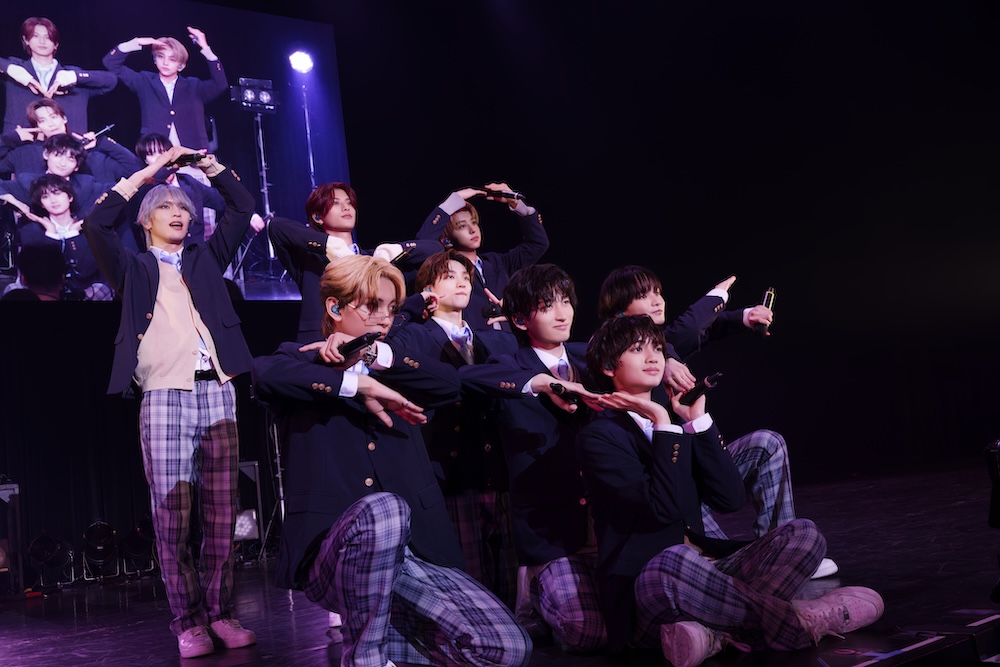 また、中盤ではユニット曲もフィーチャー。阿久根、志賀、竹野が「恋ソーダ」で弾けるように淡く甘いラブストーリーをチャーミングに紡ぐと、ボーカルに定評のある千田と八神はR&Bバラード「listen to your heart」で切なくも力強い歌声を響かせ、中村、山本、筒井はダンスブレイクでもしっかりと魅せる「Butterfly Echo」でスキルの高さをアピール。さらに、この日が初披露となった「Drive in my Tokyo」では竹野がメインパートを担当し、新たな魅力を発揮。それぞれの強みにフォーカスを当てることで、改めて多彩な個性を持ったグループであることを感じさせる時間となった。