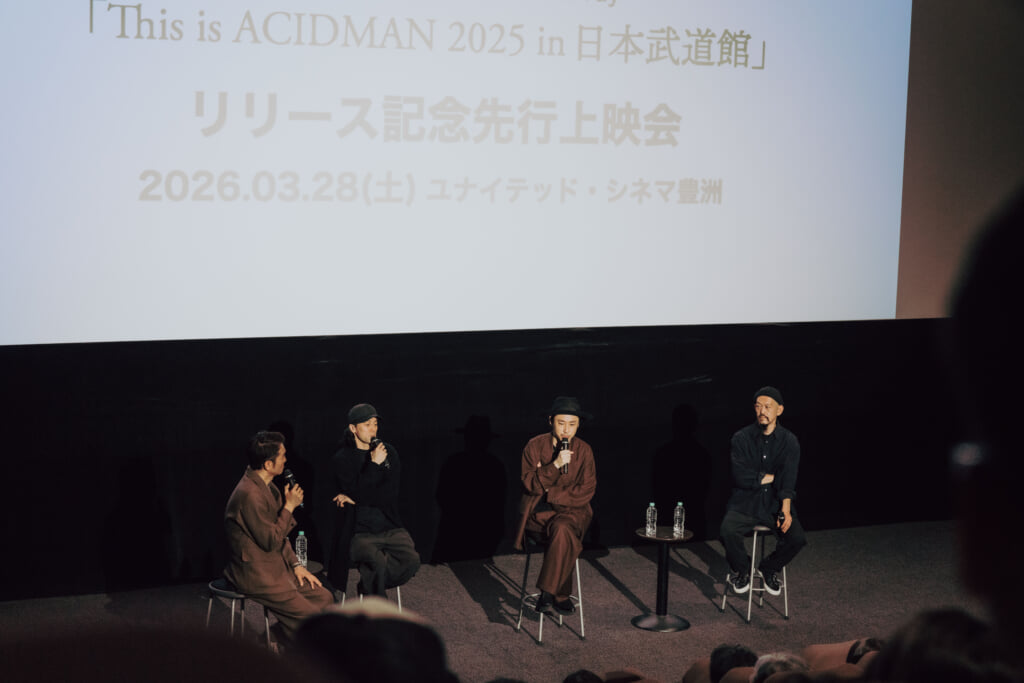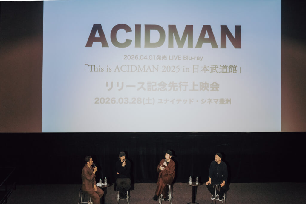 2026年4月1日にリリースされるライブBlu-ray『This is ACIDMAN 2025 in 日本武道館』を、いち早く体感できる先行上映会が3月28日、東京・ユナイテッド・シネマ豊洲で開催された。約3時間に及ぶ本編上映に加え、上映後にはACIDMANのメンバー3人が登壇する舞台挨拶も実施。武道館の熱量と緊張感を、映画館の大画面と大音量で再体験する特別な1日となった。同イベントのオフィシャルレポートをお届けしたい。