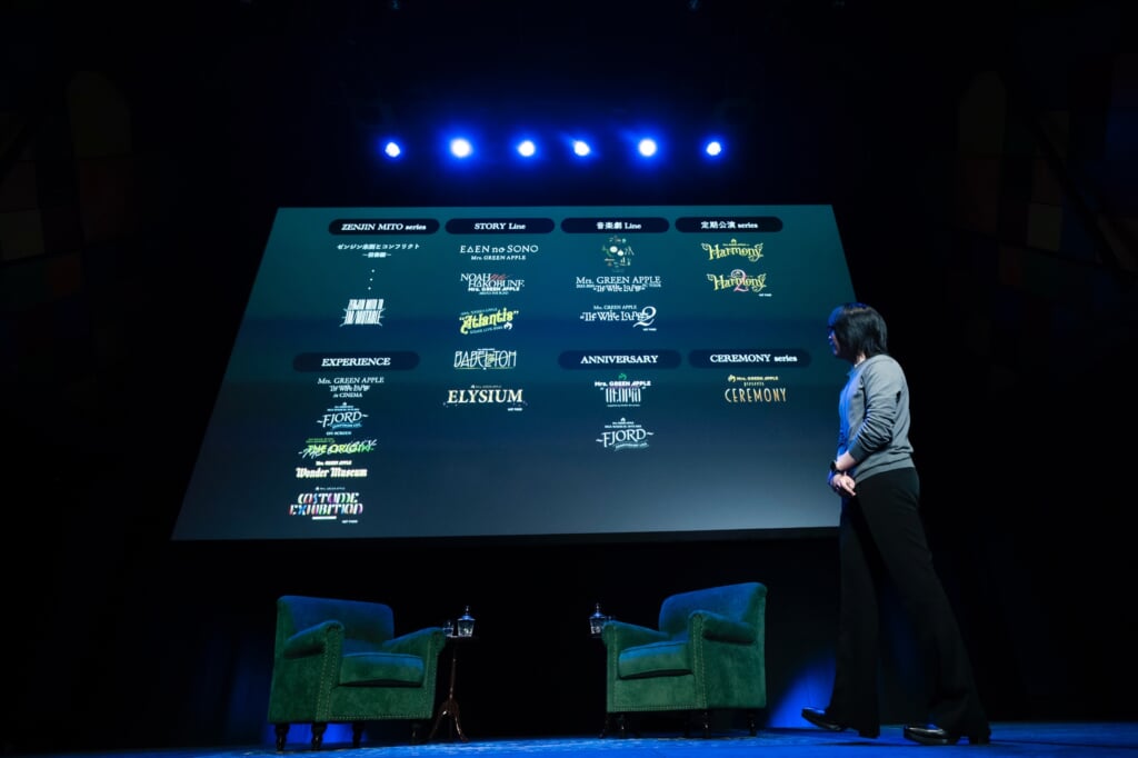 そしてイベント後半では、大森が単独で登壇し、2026年後半から2029年までのライブイベント等の構想を自らの言葉で明かすという、業界的にも社会的にも異例となる驚きのプレゼンテーションが行なわれた。その主な内容は以下のとおりだ。