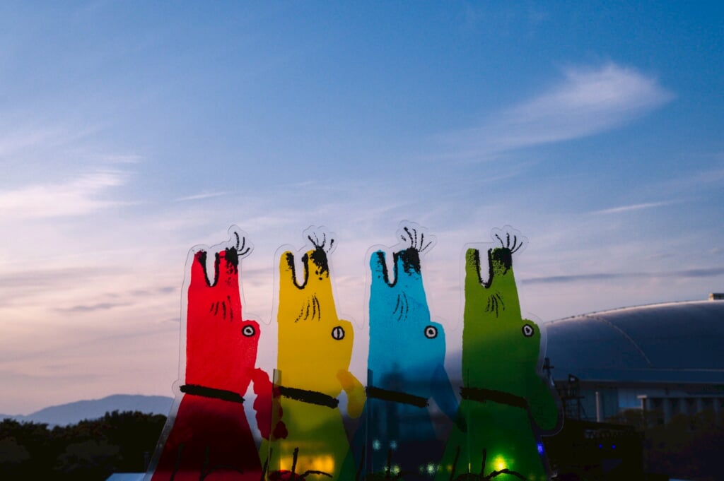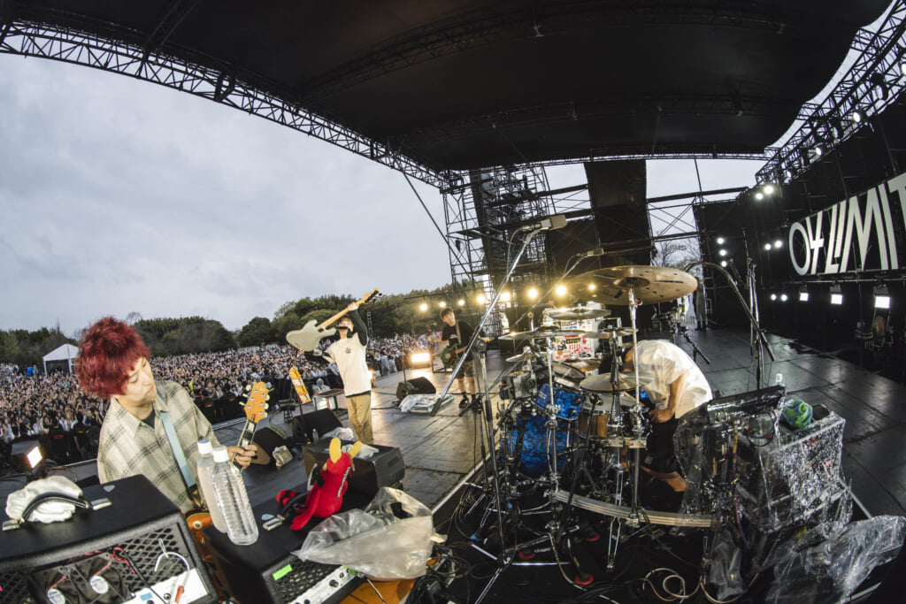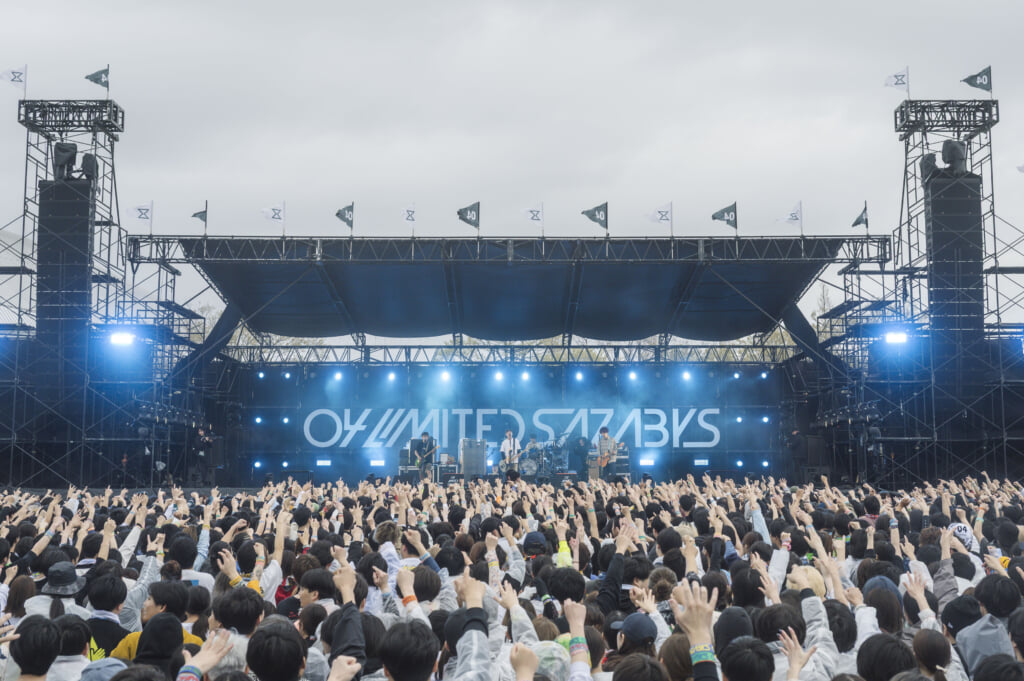 開催地はGENの生まれ育った豊橋。会場の豊橋総合スポーツ公園にはフリーライブながら見事抽選を勝ち取った1万人が雨の中集結した。田原市生まれ豊橋市育ちのGENは、とよはしミュージックアンバサダーも務めるなど、地域とも積極的にコミュニケーションを取っており、04 Limited Sazabysの活動がダイレクトに地域の活性化に繋がっているという。この日も生憎の雨模様の中集まった1万人が雨にも負けず、04 Limited Sazabysのライブを文字通り全身びしょ濡れで楽しむ姿があった。