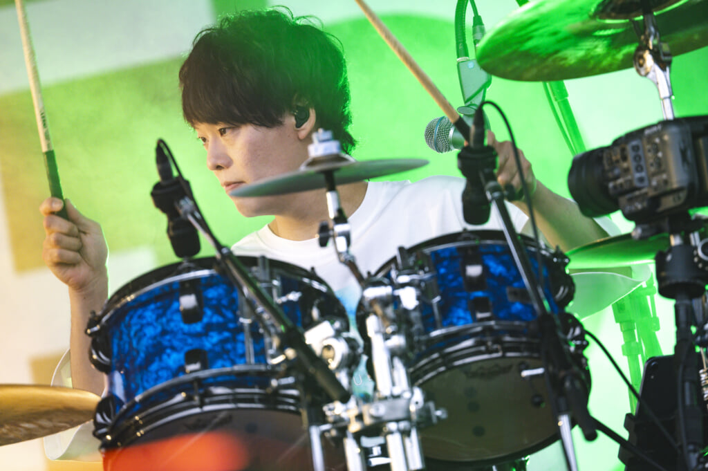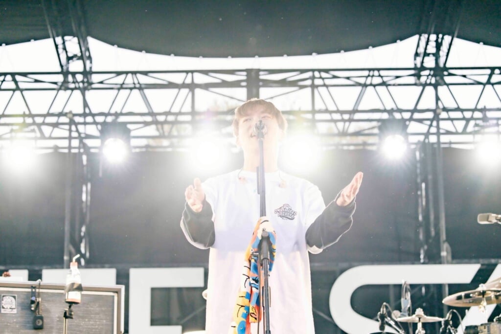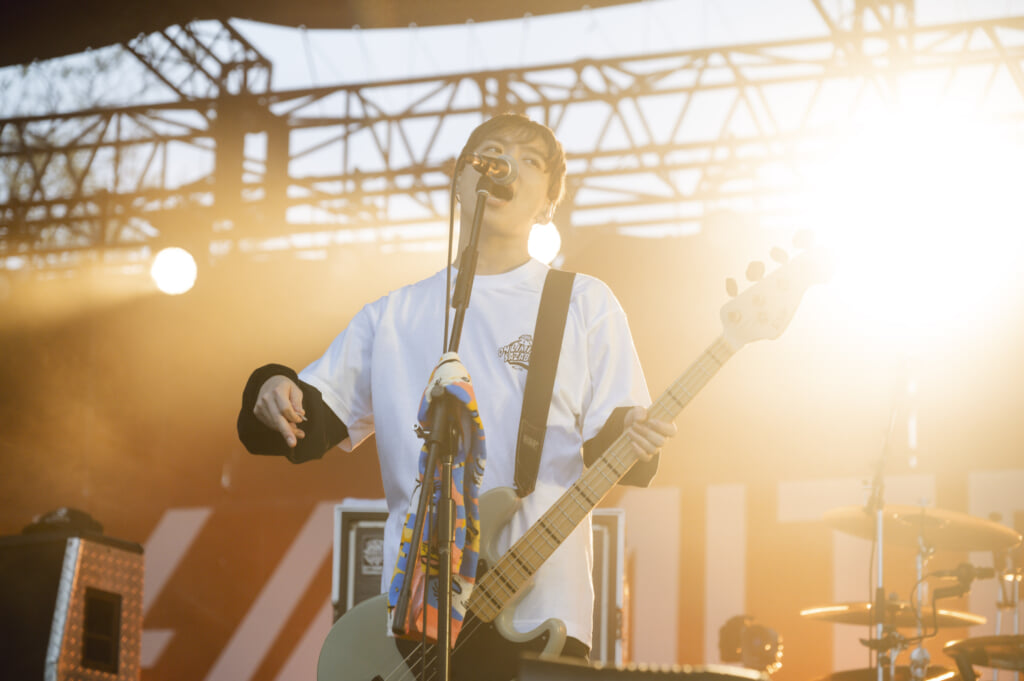 そんな少年少女の扉を開ける音が豊橋総合スポーツ公園に鳴り響いたのが「climb」だ。この日GENは「何者でもなかった自分」と口にしていたけれど、僕らは生きていく中で大なり小なりいろんな経験をして何者かになっていくのだ。GENもHIROKAZもRYU-TAもKOUHEIも、僕も君も君も君も、ここにいる全員が何者かになって生きて集まっているのだ。それぞれの扉を開いて、高く高く飛んできたから、雨なんてへのへのかっぱでここにいるのだ。とはいえ「Chicken race」での雨の中の田植えモッシュは圧巻だった。でも分かっているのだ。こういう日こそ後々伝説になることを。「knife」でRYU-TAががなり歌う中でガッツポーズをしながら雨の中に消えていく男の子の表情が今でも焼き付いているけれど、ひとりひとりの生活に、人生に、04 Limited Sazabysがいるのだろうな。それって本当に全然当たり前のことじゃなくって、04 Limited Sazabysの足跡そのものなのだろうな。