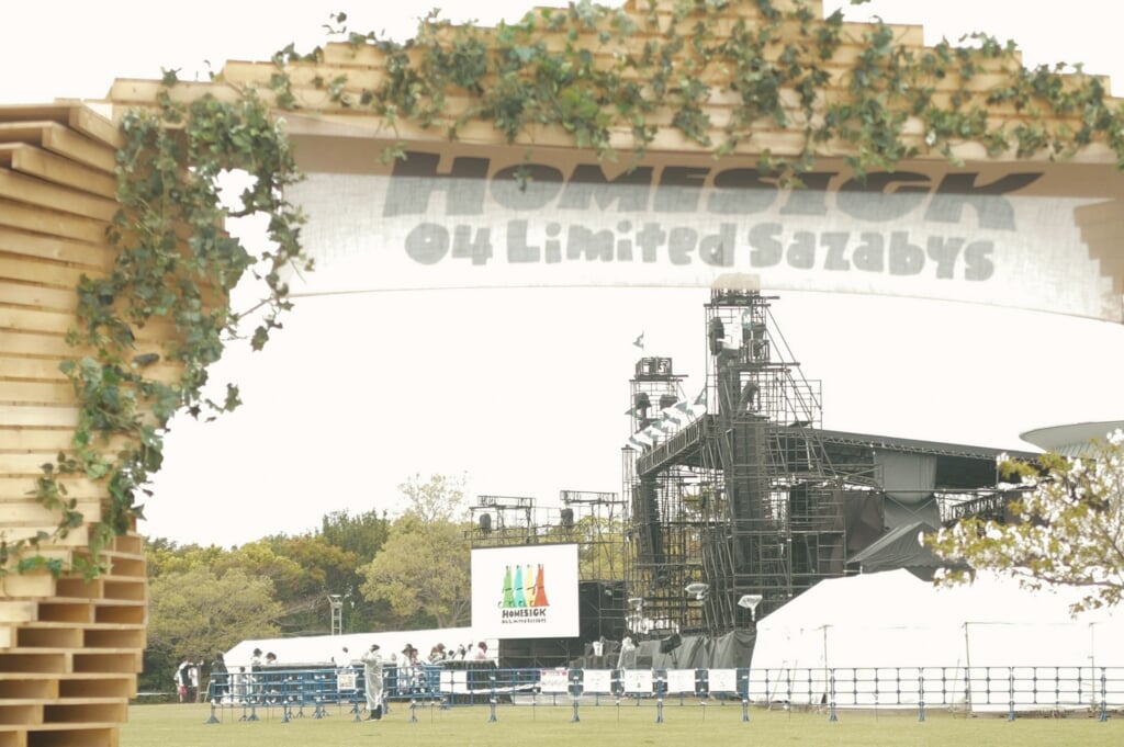 降水確率100パーセントの中で始まった「HOMESICK」はその地元愛から予想していたより降水量も少なく、04 Limited Sazabysの始まりの曲ともいえる「Standing here」からライブが始まったことで、もはや雨がどうとか、槍がどうとか関係なくくっちゃくちゃのひっちゃかめっちゃかに興奮を表す観客たち。「Now here, No where」を畳みかける姿に、どこでもない、ここ豊橋でこの光景を04 Limited Sazabysが作り上げていることに胸がいっぱいになる。GENは豊橋でどんな少年時代を過ごしたのだろう。誰と出会って、何と出会って、いまここで歌っているのだろう。そんなことを考えながら公園に目を配るとお父さんにしっかりと手を繋がれてステージをジッと見つめる子供を見つける。この子にも無限の可能性があって、その可能性を押し上げるのが今日のこのライブかもしれないと思うと胸がいっぱいになる。あの子は未来のGENであって、未来の04 Limited Sazabysだ。