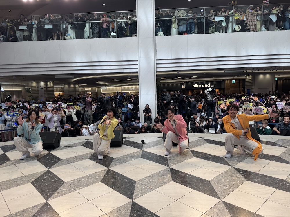 2階・3階まで見渡す限りを埋め尽くした約2,500人のファンを前に、デビュー前からSNS総再生回数6億回を超えている「ほんまやで☆なんでやねん☆しらんけど」など計4曲を披露。