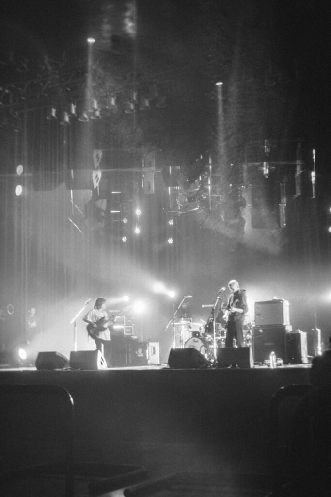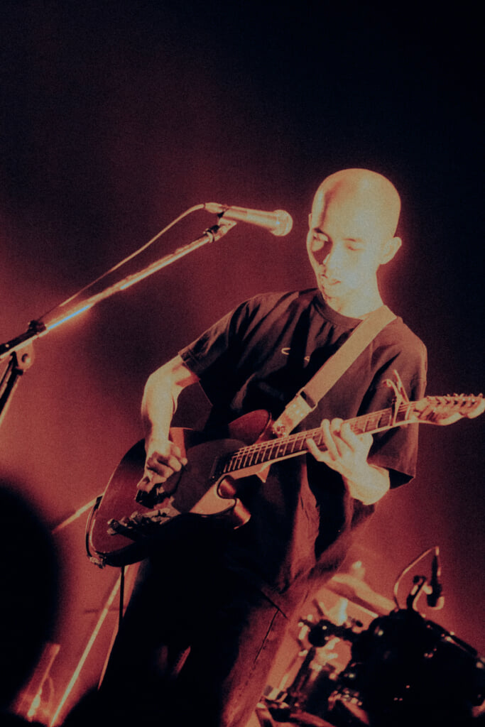 にっちもさっちもいかない時の避難所としてライブハウスを、そしてNikoんを解放し続けるという誓い。決してスペシャルではないこの約束が、嘘と格好付けを忌避し、自らが掬い上げられる領域で四苦八苦してきたオオスカの口から放たれることの尊さたるや。彼らがいつ何時も重たい扉の向こうで血生臭いミュージックを奏でている理由を明示した後、届けられた「step by step」の《愛し愛されて 狂おしい》という1節は、先ほどのMCとオーバーラップしながら、両親やメンバー、対バン相手、ファンとの交歓の中で新たな自己像を作り上げてきた2人の歩みを映し出していく。沸騰したフラストレーションを破裂されるシャウトだって、疾駆する血流をエネルギーに変換したみたいに動き回るステージングだって変わっていない。しかし、裏路地を彷彿とさせる怪しげなムードを醸し出した「ghost」や鉄めいた弦のタッチ音が伝播してきた「smile」の穏やかになった歌唱から窺い知れる通り、オオスカは己の弱さを曝け出し、他者へ頼れるようになったのだろう。笑みを溢しながら「珍しく緊張してますわ!」なんて明かせるのも、欠落ばかりだって良いのだと気付けたからである。