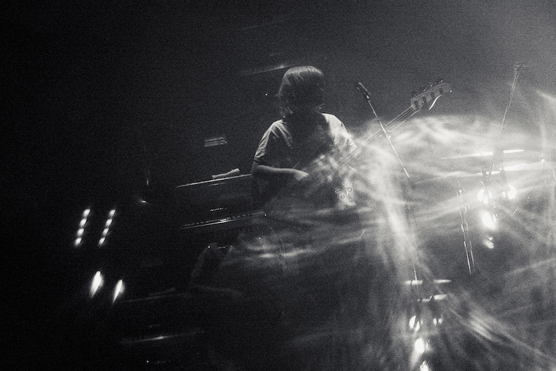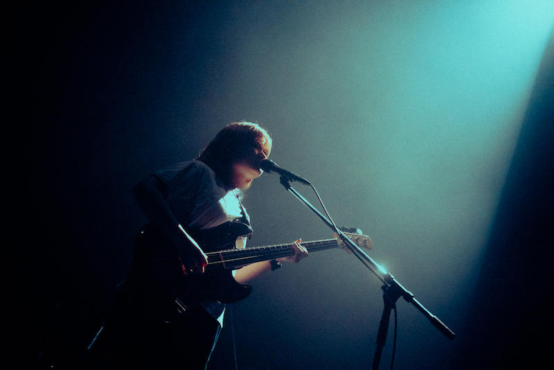 マナミは後悔をいくつも浮かべるように少しくぐもった歌声を広げ、オオスカは淡々と鈍色のアルペジオを重ねていく。ここまでドラムの姿は無し。楽曲が中盤に差し掛かる頃、ようやく東克幸(Sup Dr)が登場し、アンサンブルに加わる。なるほど、マナミ1人の嘆きからオオスカをプラスした2人の合奏へ、そして3人へと輪を広げていく過程がのっけから示されたわけである。振り返ってみると、2ndアルバムの帯に記された命題が「バンドって、なあに?」だったわけだけれど、今回掲げられた『ふたり。』という表題はその答案の一部でもあるのだろう。つまり、このツアーファイナルは、ここまで数え切れないほどのライブを積み上げてきた結果、オオスカがNikoんに何を見出したのか、マナミがNikoんをどんな存在だと感じているのかを確かめる1日と言える。