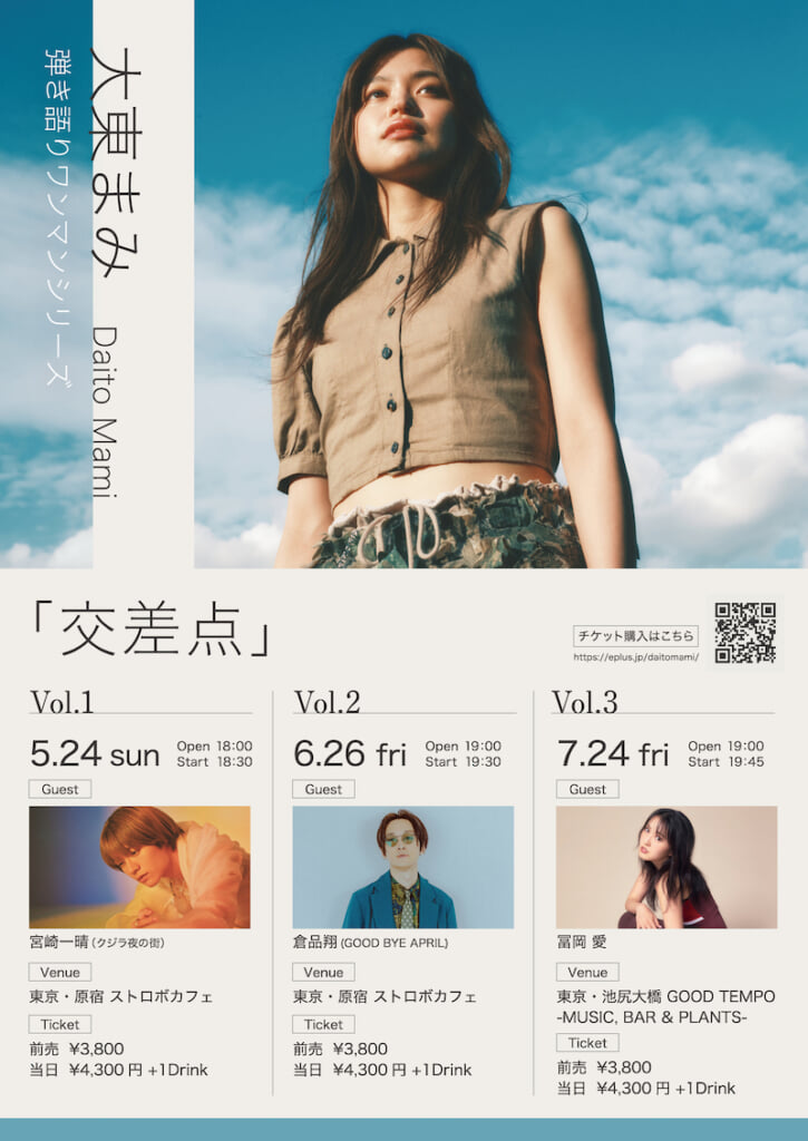 そして5月からの6ヶ月連続リリースと連動した弾き語りワンマンライブシリーズの、5月・6月・7月のゲストと詳細も発表された。それぞれ宮崎一晴(クジラ夜の街)、倉品翔(GOOD BYE APRIL)、冨岡 愛をゲストに迎え、各公演ごとに異なるセッションや対話が生まれる弾き語りライブとして展開される。シリーズタイトル「交差点」が示す通り、それぞれの音楽や感情が交わる場となりそうだ。