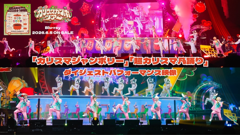 続く「超カリスマ凡踊り」は、3rdアルバム『カリスマガンボ』収録曲で、和のテイストをベースにしながらも、カリスマらしい遊び心あふれるアレンジが光る楽曲だ。ライブ映像では、盆踊りを彷彿とさせる振り付けを取り入れた、個性あふれるパフォーマンスが見どころになっているとのこと。