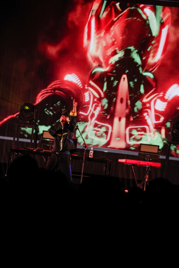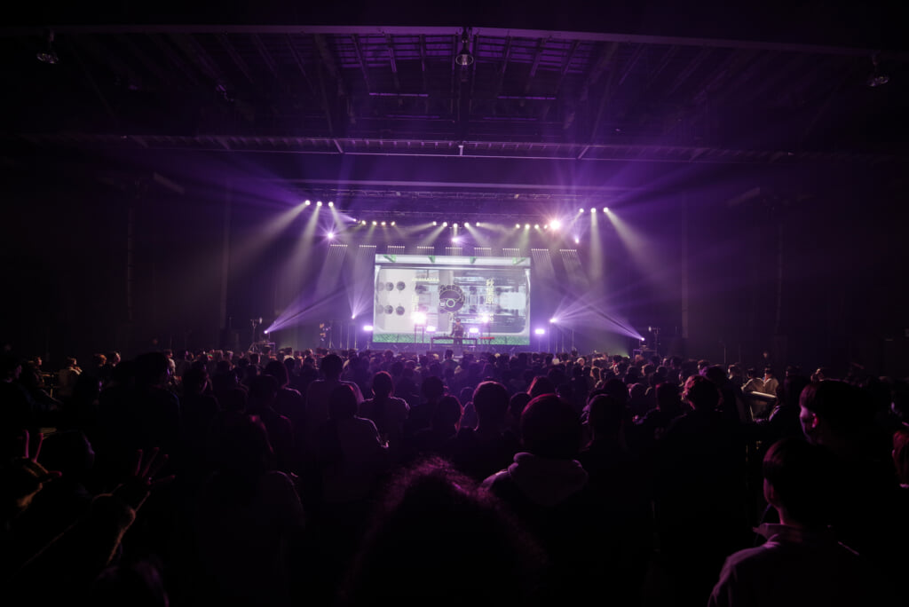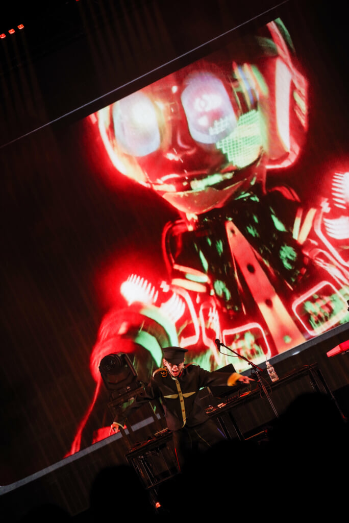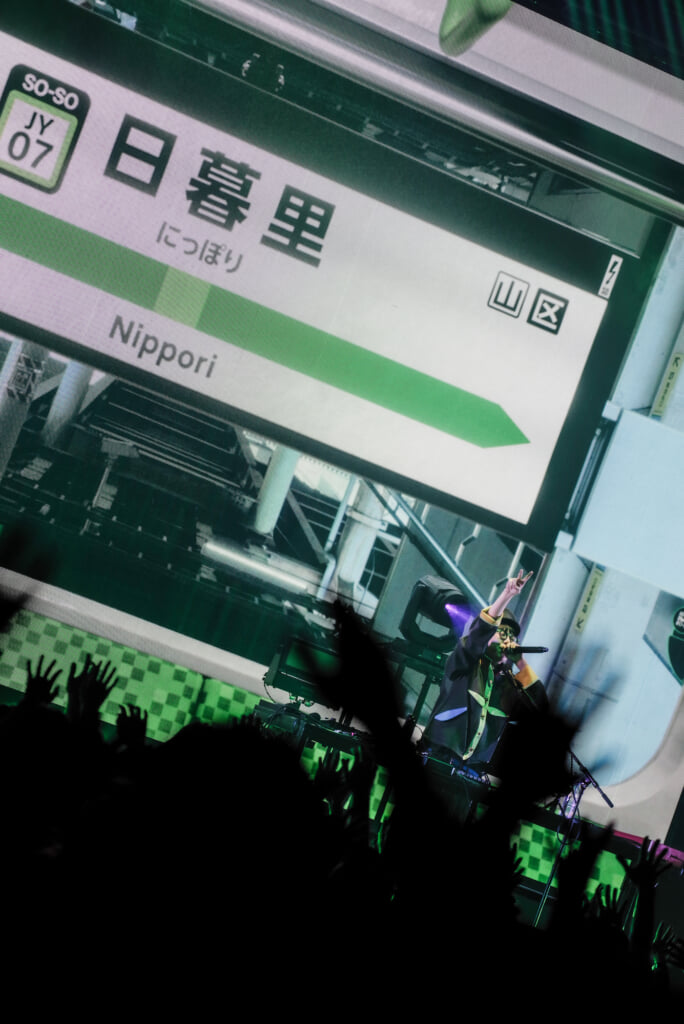 セットリストはアルバムと同様、“東京〜神田〜秋葉原”と山手線内回りのサウンドジャーニーへ。それぞれの駅をイメージして制作されたカラフルな楽曲が次々と展開されていく。例えば、“秋葉原”はハードな中にキャッチーなメイドカフェのヴォイスサンプル、“田端”は語呂や語感の良さを活かして“たば・たば・たば……”のサンプルループなど、趣向を凝らしたサウンドでオーディエンスを魅了した。