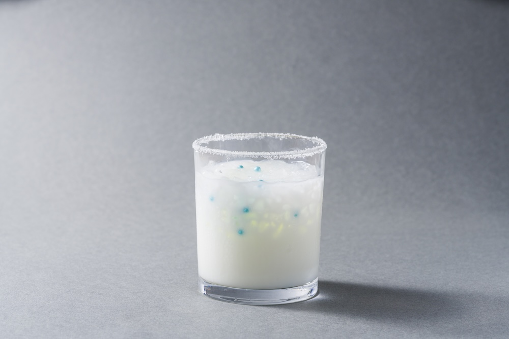 雪の白さをチョコレートベースで表現した冬のカクテル。結晶やパールシュガーをあしらい、「花のように降る雪」というストーリーを立体的に演出。