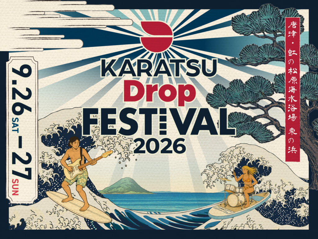 <Karatsu Drop Festival 2026>が9月26日および27日、佐賀・唐津市 虹の松原海水浴場 東の浜で開催される。オーストラリア発祥のサーフトリップ追従型音楽フェスとして2022年に宮崎にて初開催された<DROP FESTIVAL>が2025年、九州サーフィン発祥の地と言われる佐賀県唐津市に会場を移し、感動の波を呼んだフェスが、再び唐津の地へ。同地で第二回目となる<Karatsu Drop Festival>の第一弾出演アーティストが発表となった。