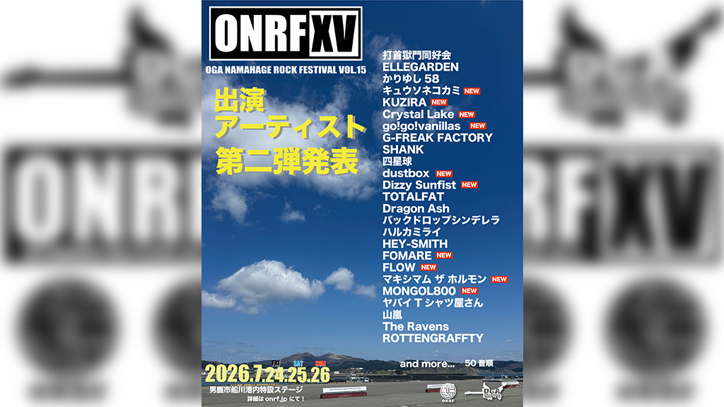 第一弾として発表されたのは、Dragon Ash、打首獄門同好会、Nothing’s Carved In Stone、PESの4組だ。Dragon Ashは昨年の<からつDrop>初開催を大いに沸かせるなど、メンバーも絶賛する海に囲まれた最高のロケーションで今年も熱いパフォーマンスを繰り広げる。 打首獄門同好会はエンタメ性の高いパフォーマンスで“生活密着型ラウドロックバンド”ならではのステージをみせてくれるはずだ。そして、Nothing’s Carved In Stoneは、シーンに名だたる4名の屈強なサウンドがビーチに骨太かつ緻密なロックを打ち鳴らす。RIP SLYMEの期間限定活動再開を経て、ソロとしても全国ツアーや新作EP制作など新たな境地で活躍の幅を広げているPESの初登場が決定した。今後も出演アーティストは続々追加発表される予定だ。