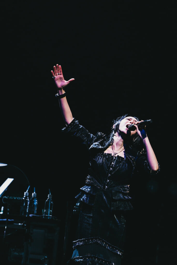そんななか、終盤ブロックに突入する前のタイミングでさりげなく新曲が登場したのも印象的だった。SAIKIが発した「忘れてたことが……。新曲、やってなくない?」といったナチュラルな言葉に導かれて披露されたその曲は、「Days」と題されていて、当然ながらこの夜のステージが世界初公開の場となった。“立ち止まることを恐れない”といったニュアンスの歌詞の断片が聞こえてきたが、これはSAIKI自身の作詞による、メンバー全員の今現在の心境が綴られたものなのだという。